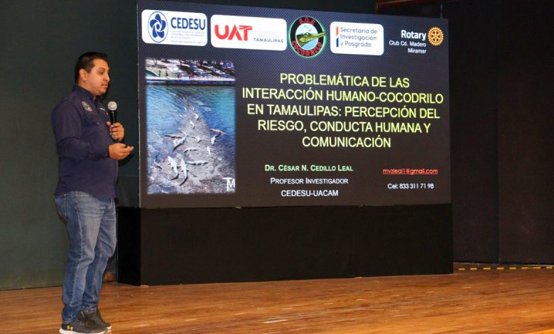 La Universidad Autónoma de Tamaulipas (UAT) llevó a cabo la conferencia “Problemática de las interacciones humano–cocodrilo en Tamaulipas: percepción del riesgo, conducta humana y comunicación social”, un espacio de reflexión académica que vinculó el conocimiento científico con los desafíos sociales y ambientales del entorno regional.