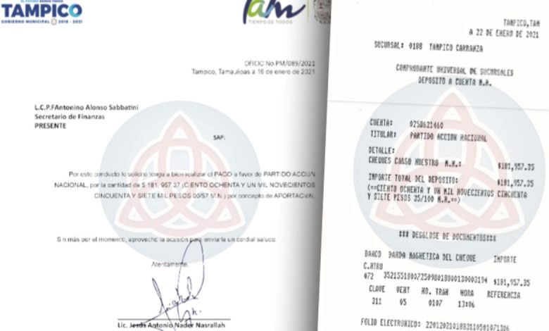 Tampico, Tamps.- Una revisión exhaustiva de documentos, solicitudes firmadas y comprobantes bancarios obtenidos por Noticias PC expone una secuencia administrativa que vincula decisiones tomadas desde la presidencia municipal de Tampico con una aportación económica dirigida al Partido Acción Nacional (PAN) en enero de 2021, en un contexto político marcado por la búsqueda de continuidad en el cargo.