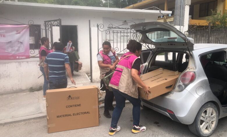 Jaumave, Tamaulipas.- Elementos de la Guardia Estatal en el municipio de Jaumave brindaron seguridad en la entrega y salida de algunas casillas en el Consejo Municipal del Instituto Electoral de Tamaulipas (IETAM).