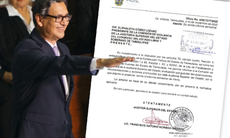 Ciudad Madero, Tamps.- Un informe técnico que en cualquier democracia consolidada detonaría explicaciones inmediatas desde la administración municipal, hoy transcurre entre silencios y reservas. El documento Semestral ASE/1317/2025, suscrito por el Auditor Superior del Estado, Francisco Antonio Noriega Orozco, y recepcionado en la Oficialía de Partes del Congreso local el pasado 3 de noviembre, expone un entramado de observaciones acumuladas —y no atendidas— que abarcan casi una década, de 2016 a 2024.