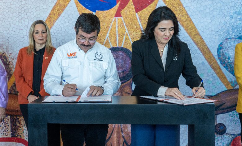 El rector de la UAT, Dámaso Anaya Alvarado, y la presidenta municipal de Tampico, Mónica Zacil Villarreal Anaya, firmaron el acuerdo que responde a la demanda de especialización en el ámbito de la psicología forense, el cual marcará un impacto directo en el fortalecimiento de la atención a víctimas y en la reconstrucción del tejido social de la región.