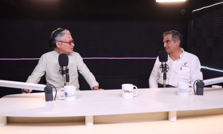 Ciudad Victoria, Tamaulipas.- Durante la segunda emisión de la serie Obras que Transforman Tamaulipas, del programa “Diálogos con Américo”, el gobernador Américo Villarreal Anaya destacó el desarrollo del Puerto del Norte en Matamoros, la Agencia Nacional de Aduanas en Nuevo Laredo, el Puerto Interior Multimodal en Victoria y la modernización del transporte público.
